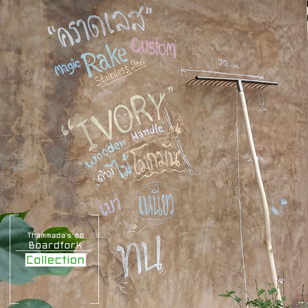 หัวคราดทำจาก สแตนเลส 304 กว้าง 76 cm. มีฟันโค้ง 20 ซี่ ยาว 10 cm.